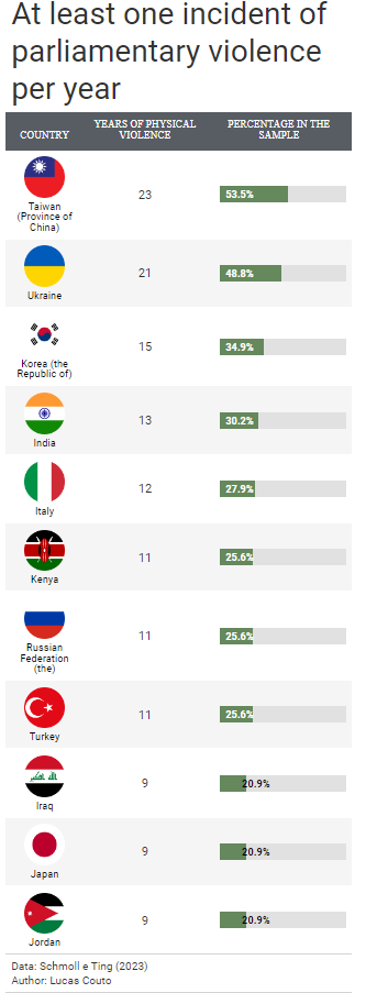 Today, we’ll take a glimpse at the third version of the FISTS, which stands for Fistfights in parliamentary Sessions Time Series. The dataset was organised and recently updated by Professors Moritz Schmoll and Wang Leung Ting, and is the cornerstone of their paper published in the Journal of Conflict Resolution.